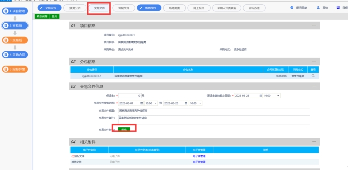 一、 点击【交易文件】菜单完善公告信息后点击“制作”按钮,挑选范本